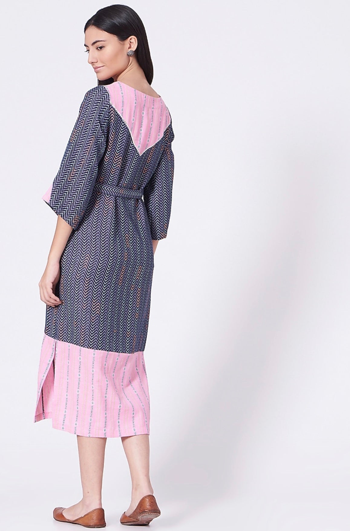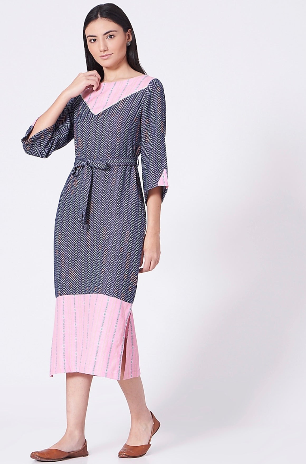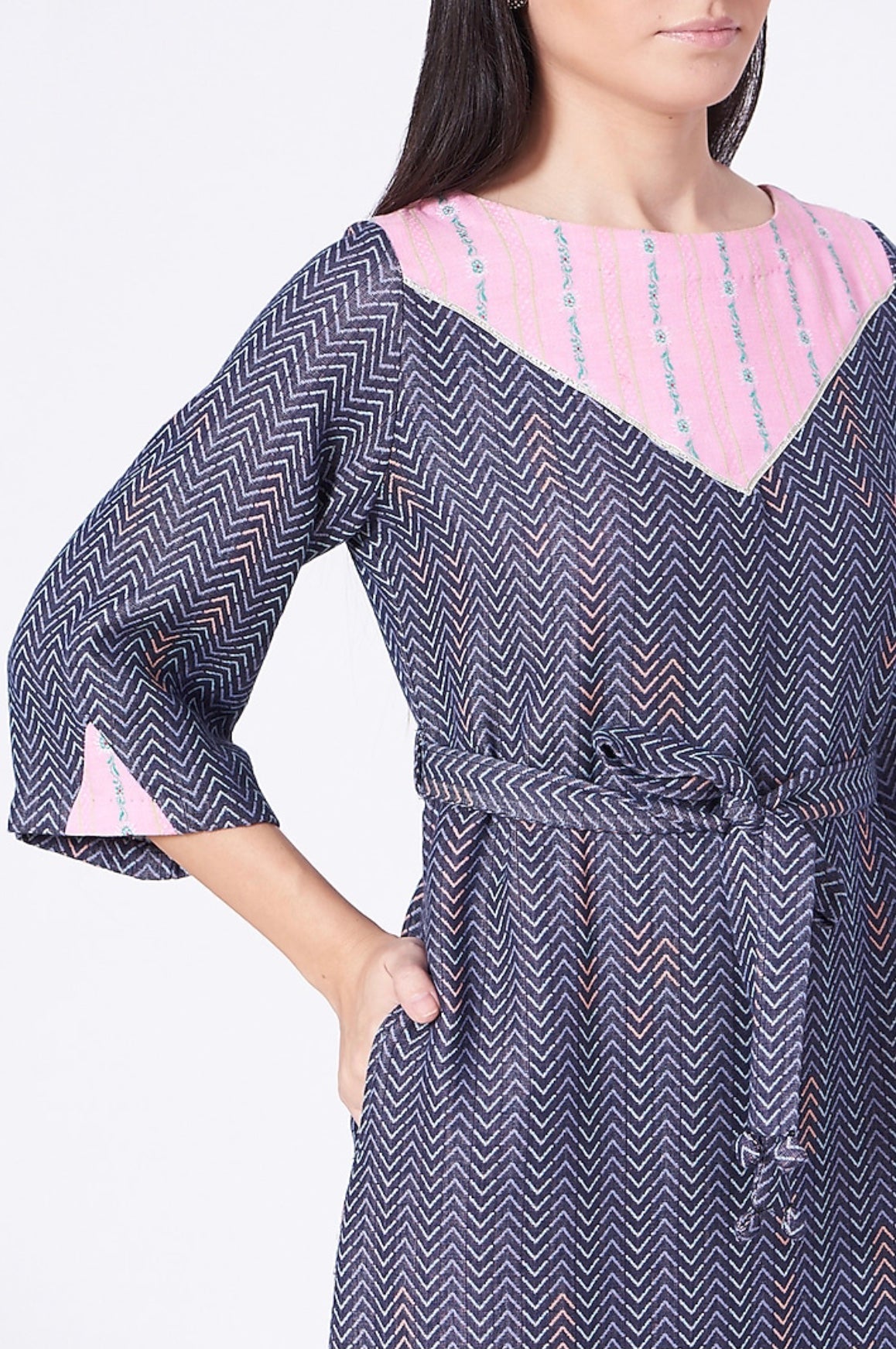 Cotton dress with belt and lace detailing. Pockets and slit, can also be worn as a tunic/kurta